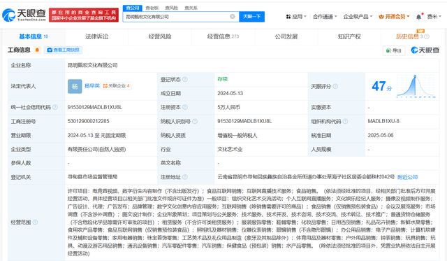 该公司成立于2024年5月,法定代表人、经理为杨早英,注册资本5万人民币,经营范围包括食品互联网销售、互联网直播技术服务、互联网销售等,由杨早英全资持股■◆。