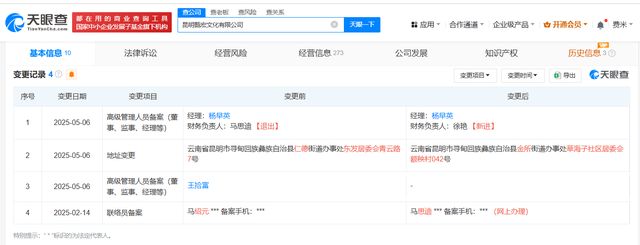 值得一提的是★◆■■■◆,近日◆◆,昆明甄宏文化有限公司发生工商变更,王拾富(小英老公上拉如)卸任监事,同时该公司财务负责人发生变更。